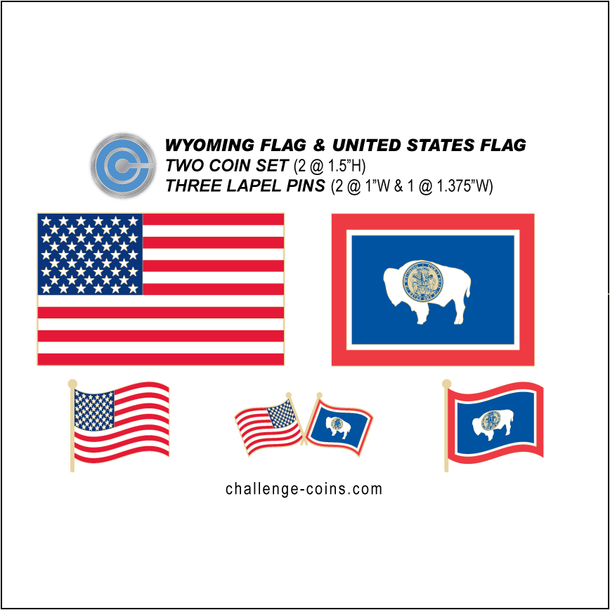 1 – USA flag & 1 Wyoming State Flag